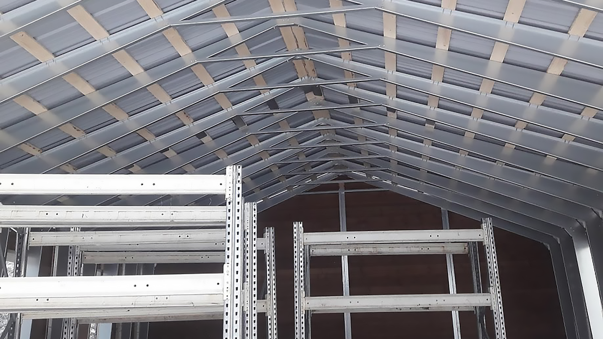 • Kattopohjaan asennettaan aluslaudoitus itseporatuvilla ruuveilla (puutavara ei sisälly toimitukseen) ja sen jälkeen kattopellit ruuvataan paikalleen.
