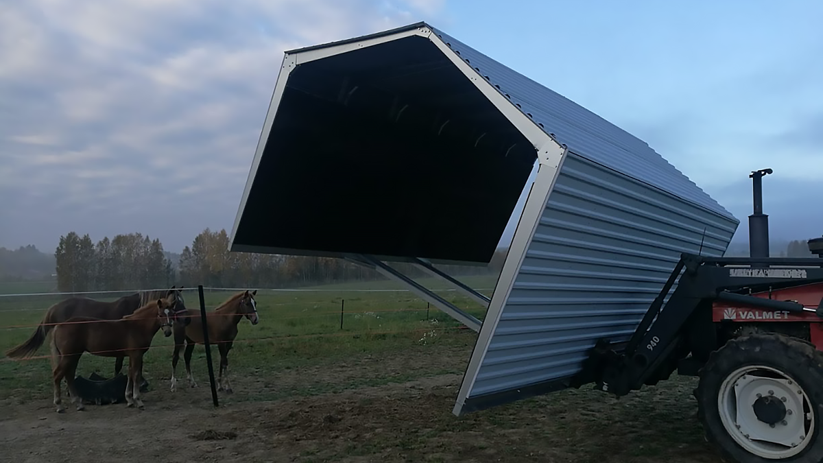 Siirrettävyys tekee eläinsuojasta erinomaisen ratkaisun sääsuojaksi laitumelle. Siirretään trukkipiikeillä varustetulla traktorilla uuteen paikkaan tai puhtaalle alustalle. Kehitetty yhdessä eläinten omistajien kanssa, joten kaikki tärkeimmät ominaisuus seikat on otettu huomioon myös käytännössä testaamalla.